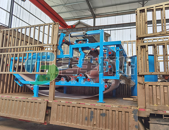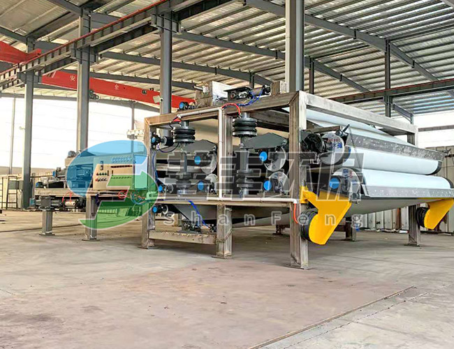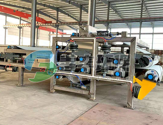 帶式污泥脫水機是一種新型高連續運行的固液分離設備。它以聚脂網作為過濾介質,能把經過予處理含水率在99.5 以下的各種懸浮液,經過多級壓榨脫水成泥餅狀(其脫水后含水率隨不同物料而異)。