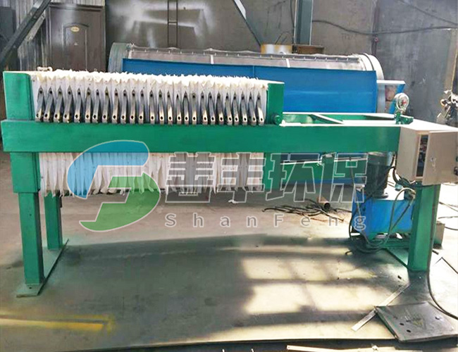 懸浮液用料泵送入濾機每個密閉的濾室,在壓力作用下,濾液透過濾層及濾布,經濾布出液口排出,濾渣則留在濾框內,從而達到固液分離的目的。