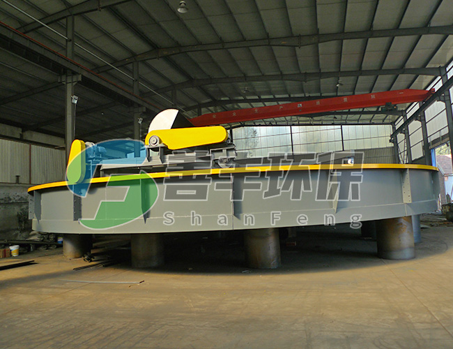 該設(shè)備整體呈圓柱形,結(jié)構(gòu)緊湊,池子較淺。包含池體、螺旋布水機(jī)構(gòu)、溶氣釋放機(jī)構(gòu)、旋轉(zhuǎn)機(jī)架、集水機(jī)構(gòu),撇渣機(jī)構(gòu)、溶氣系統(tǒng)、回流水管道及電控柜等部件。進(jìn)水口,出水口和污泥的排出口均在設(shè)備的旋轉(zhuǎn)區(qū)域內(nèi),布水機(jī)構(gòu)、集水機(jī)構(gòu)、溶氣釋放機(jī)構(gòu)都與框架緊密連接在一起,圍繞池體中心轉(zhuǎn)動(dòng)。本裝置提供成套設(shè)備總成及控制系統(tǒng),通過(guò)集中控制與分散控制相結(jié)合,以使設(shè)備達(dá)到更好運(yùn)行狀態(tài)。