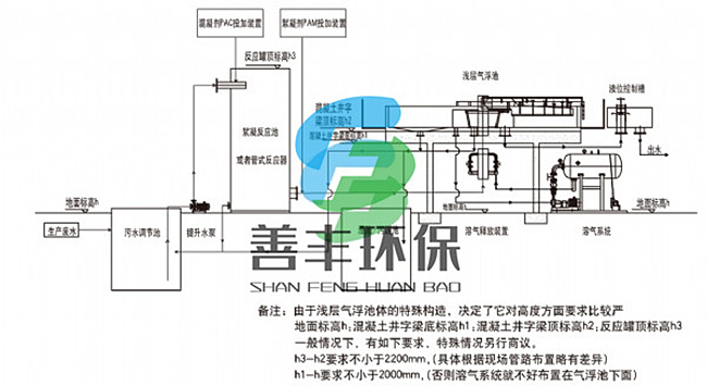 SF型淺層氣浮裝置,是一種快速氣浮系統(tǒng),它在傳統(tǒng)氣浮理論的基礎(chǔ)上,又成功的運(yùn)用了“淺層理論”和“零速原理”,通過(guò)精心設(shè)計(jì),集絮凝、氣浮、撇渣、刮泥為一體,是一種水質(zhì)凈化處理的設(shè)備。”
