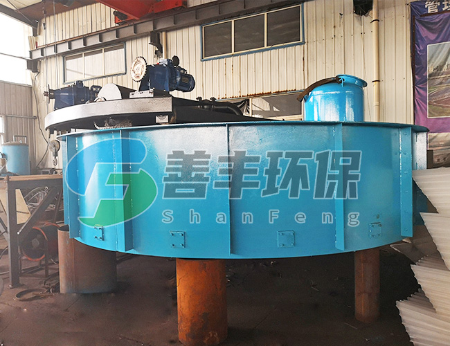 “SF型淺層氣浮裝置針對傳統氣浮池的不足之處,把它的原水進口和凈化水的出口設計為移動式,以縮短原水中氣泡上浮時間,也就是原水流向氣浮池的同時,池中布水管向原水流出的相反方向移動,使進入到池子中的原水基本上處于相對靜止的狀態,這樣水中的氣泡則沿著垂直方向浮向水面,浮起速度接近原水中固形物上浮速度(4~250px/min),因此原水中的懸浮物能很快浮到水面上,而浮渣下的凈化水仍停留在原處,當凈化水集水管移到此處時,凈化水就能排到池外。為了使進、出水口能同步移動,該機設計成圓形,進、出口管安放在轉架上,使它圍繞著中心轉動,這種移動的布水方式產生“零速”。原水中的懸浮物從水中浮到表面的速度快,三分鐘原水就能達到凈化要求。