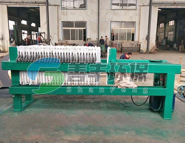 懸浮液用料泵送入濾機每個密閉的濾室,在壓力作用下,濾液透過濾層及濾布,經濾布出液口排出,濾渣則留在濾框內,從而達到固液分離的目的。